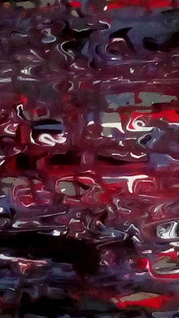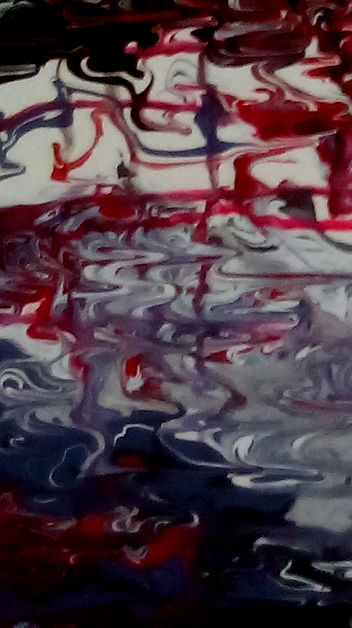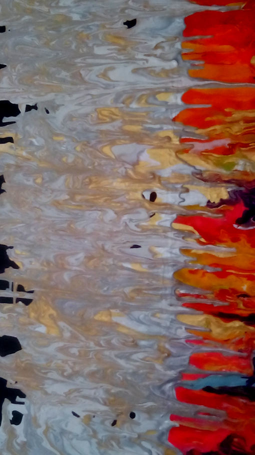 ALGUES : Pouring acrylic 30 x 30 cm met rode overheersing