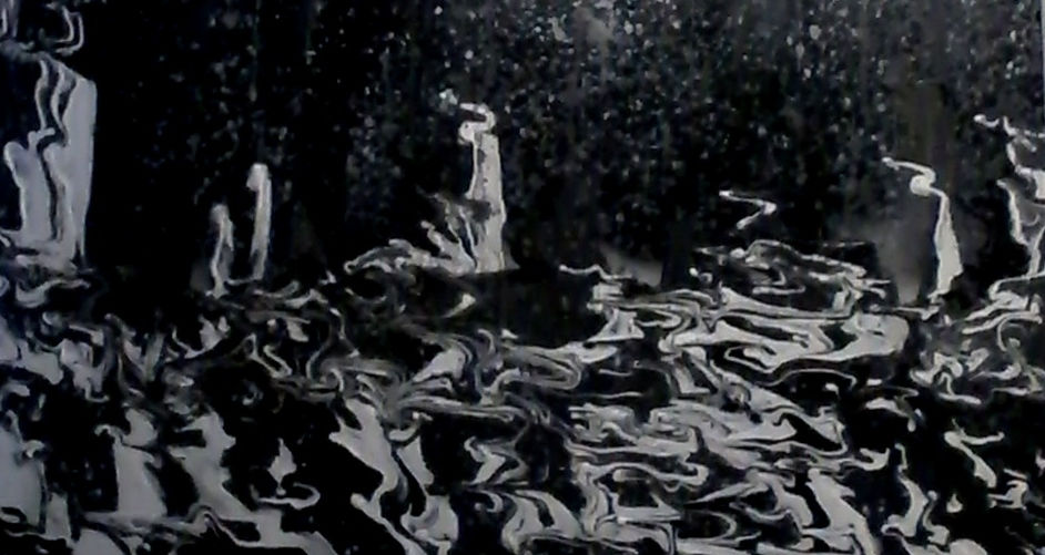 NUIT CENDREE: Dripping acrylique sur toiles 3D en 2 parties de 80 x 80 cm soit 160 x 80 cm.