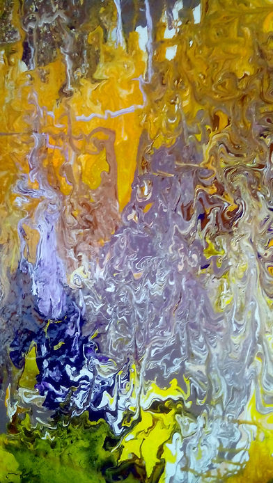 PURPLE STORM : Dripping acrylic in 3D 80 x 80 cm paars geel en wit zijn de basis kleuren.